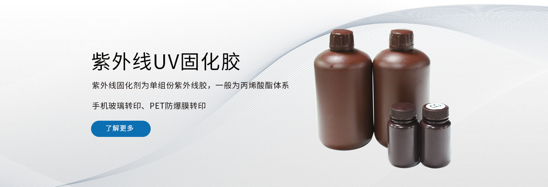 現我司主要研發產品包括:UV膠水、LED膠水、CD紋膠水(可以附著在不同的素材上,例如:玻璃、金屬、PET、PC、PMMA等)、鏡面銀油墨、彩色鏡面油墨、手機玻璃油墨、家電玻璃油墨、單組份耐水煮樹脂及油墨、雙組份耐水煮樹脂及油墨、特殊油墨、正面印…